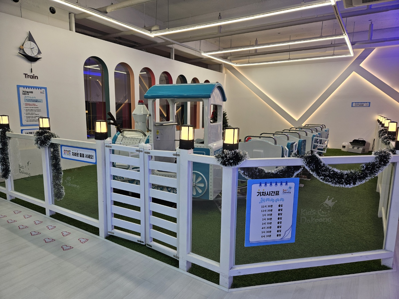 3시간이 훌쩍 지나갈 정도로 아이가 집중해서 놀더라고요. 낚시하고 코인으로 바꿔 오락게임도 할 수 있구요, 뱅뱅 도는 놀이기구도 탈 수 있답니다. 기차는 매시간 30분 타임에 탈수 있는데 놀게 너무 많아서 저희 아이들은 한번도 못탓네요!